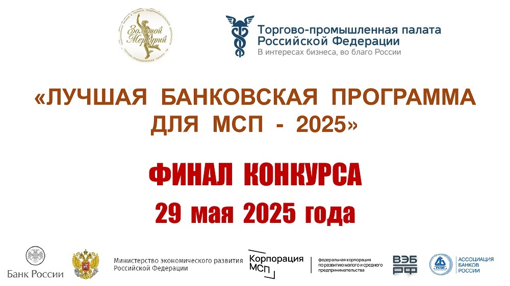 Торгово-промышленная палата Российской Федерации завершила отбор участников финала Банковского конкурса «Лучшая банковская программа для МСП», который состоится 29 мая 2025 года.