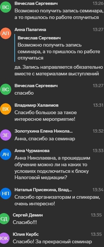Программа прошла на одном дыхании и получила хорошие отзывы участников. Дмитрий Подшибякин поблагодарил МИМОП за организацию обучения, возможность из первых рук поделиться важной информацией и довести до региональных отделений посыл президента ТПП РФ Сергея Катырина о необходимости развития, в частности, межрегионального направления работы арбитража.
