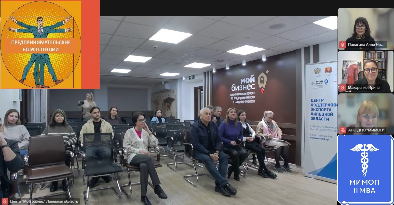 З-дневный онлайн-тренинг «Предпринимательские компетенции: эффективные инструменты и техники» провела для предпринимателей Липецкой области спикер МИМОП Ирина Макаренко – судебный эксперт, бизнес-тренер, победитель Всероссийского конкурса «Мастер бизнес-тренинга», кандидат психологических наук.