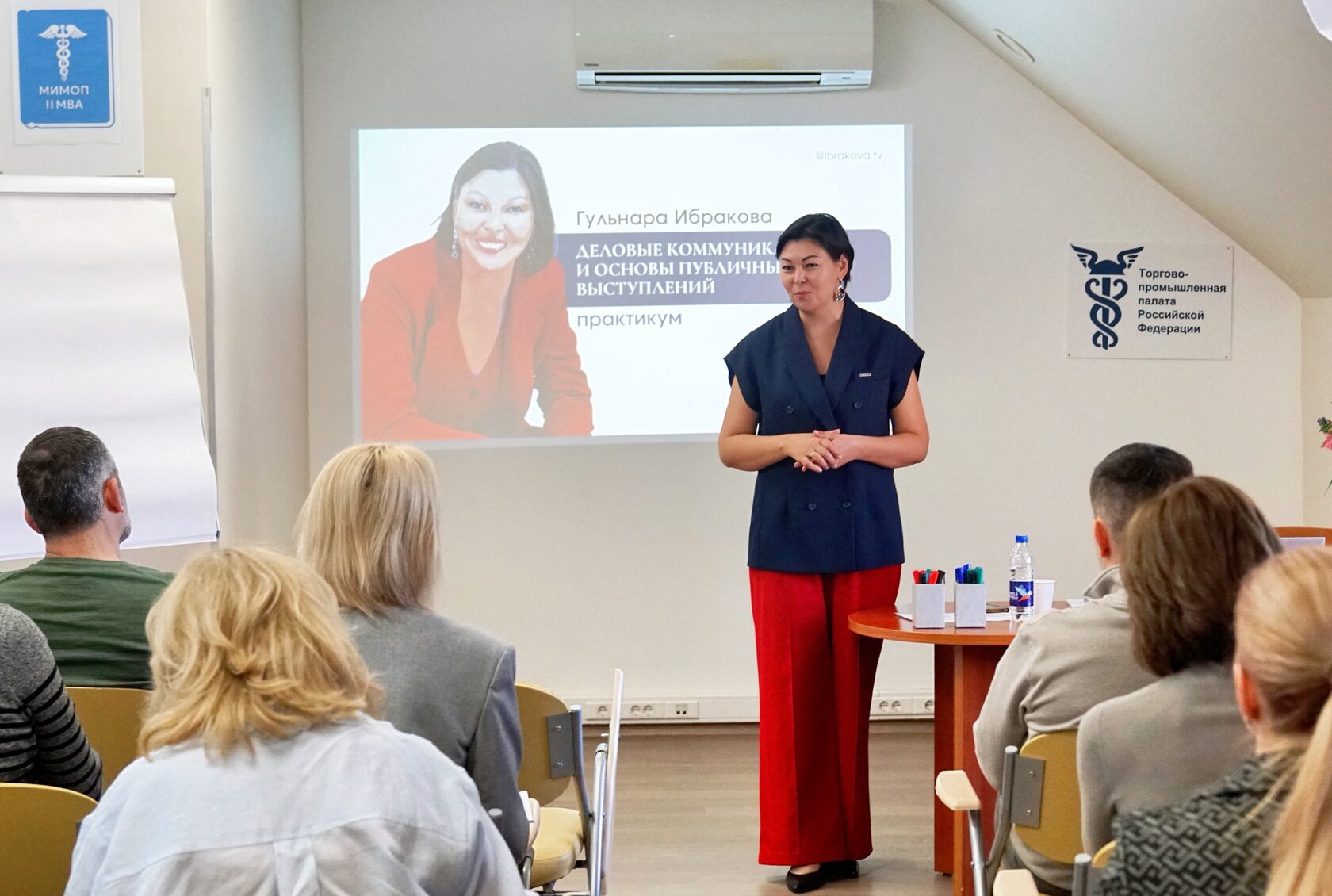 Первый день установочного модуля, который называется «Теория и практика управления торгово-промышленной палатой», посвящен коммуникациям. Бизнес-тренер по голосу, речи, ораторскому мастерству, ведущая прямых эфиров